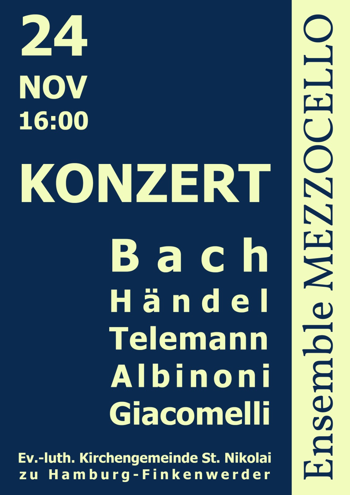 Das Ensemble Mezzocello präsentiert Werke von Bach, Händel, Telemann, Albinoni und Giacomelli.